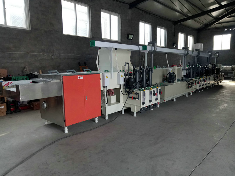 工藝流程:入料→除油→壓力洗+市水洗 →微蝕→壓力洗+市水洗→酸洗→壓力洗+市水洗→純水洗→→純水洗*4→吸干洗→冷風(fēng)干→隔離→熱風(fēng)干→出料